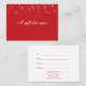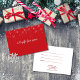 holiday business gift certificate featuring elegant falling snowflakes on a red background with chic white script typography. Add your details on the reverse.