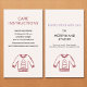 Add a heartwarming finishing touch to your handmade holiday goods with this care instructions card, featuring a cranberry red cozy sweater and cheerful seasonal guidance. A thoughtful detail that blends practical tips with festive charm.