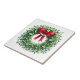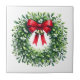 Holiday season ceramic tile is shown with a festive mistletoe berry wreath print.