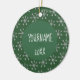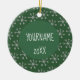 So cute hunter green Christmas ornament with silver snowflakes pattern. Customize the name and year for a customized treasured keepsake!