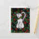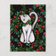 Holiday Christmas Holly White Cat Postcard
