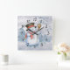 Holiday Christmas Snowman Watercolor Snow Square Wall Clock