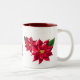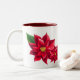 Holiday coffee mug is shown here with a festive red poinsettias print.