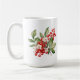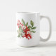 Holiday coffee mug is shown with a lovely red berries floral print.
