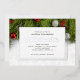 This business Christmas party invitation offers a beautiful background of evergreen branches accented with red and white ornaments. The design is accented with stylish custom text appearing in real silver foil.