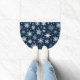 This holiday doormat is shown with a Christmas holiday snowflakes print.