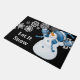 Doormat shown in black with a cute let it snow snowman print.