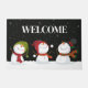 This holiday doormat is shown with a Christmas holiday snowman print.