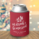 Can cooler featuring script "eat drink & be married" with Christmas greenery in festive red.