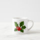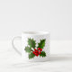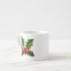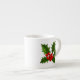This espresso size coffee mug is shown with a festive holiday holly print.
