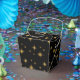 This favor gift box is shown with a festive gold faux glitter stars print.