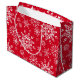 Holiday gift bag is shown in a festive winter snowflakes print.