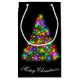 This Holiday gift bag is shown with a festive Christmas tree print.
