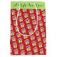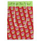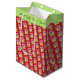 A generic gift bag design that can be customized for any occasion. This design features a pattern of green gift boxes with pink and red bows, on a red background. The coordinating green banner has text that can personalized with your message. The green banner and red background colors can be customized with colors of your choice. Gift bags are available in large, medium and small.
