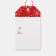 Holiday gift tag shown with a red and white festive snowflakes print. Coordinates with the holiday wrapping paper.