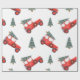 Holiday Gift Wrap Red Car and Christmas Tree-watercolor red car and pine tree design