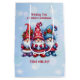 Personalized Christmas gift bag. Cute watercolor whimsical winter gnomes in red and blue. Wishing you a festive Christmas topped with joy!