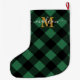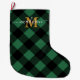 Holiday Green Plaid with Monogram and Name Large Christmas Stocking