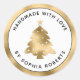 Gold Border and Christmas Tree Handmade with Love Personalized Christmas Gift Classic Round Sticker... Are you making handmade clothing, ornaments, or accessories for holiday gifts this year? Our holiday gift sticker/label displays an elegant gold foil border around the text: "Handmade with Love" and "by Your Name." In the center is a gold foil Christmas tree that coordinates with the foil border. You can easily change your name and the product name on the personalization template.