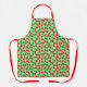 Great color and even though I ordered the kid size, it covers well enough to use during the holidays. I am not a big woman and prefer a shorter apron. I stand 5"6" and the length of the garment goes to mid-thigh. The tie straps fit well at my waist and even though there is no neck strap adjustment, the opening is plenty big enough. I am happy with the size and fit. I am sharing my apron with my 10 year old grandson, too! The color is vibrant and looks good, as shown on the website. The stitching looks strong and reinforced. Photographed is front side and back side of the apron, reinforced straps and coloring. My phone camera may not be the best at showing the details.