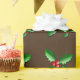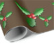 Wrapping paper shown with a brown color background with a festive holiday holly print. Customize this item or buy as is.