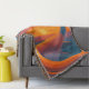 A quality printed throw has its advantages. This is a much finer weave throw than its loopier cousins, and though lighter, it is worth the investment for custom room accessorizing. The back is much prettier than the typical brown, and the fringe on the long sides very vivid, the selvage nicely done. Before photographing, I washed the throw in cold water, delicate, with a thicker woven throw the same size. On tumble dry low, this throw was dry in half the time as the other. This is a very practical quality if you use throws for furniture covers or to wrap up in frequently. The sleekness of the fabric makes it a great layer for accenting or protecting without the feeling of sitting on too much stuff. Perfect for napping or when you feel a light chill coming on. The color printing is beautiful and on this fabric, matched the design and color of my Photoshop image. This is an advantage for blending room fabrics and colors. The fringe on the short sides prints the colors from the design image and therefore varies from the side fringe. I streaked a white fractal line through the plaid pattern to give the illusion of weaving. This printed as crisp as an illusory thread, and put some white in the short side fringe, showing another advantage of print vs loomed- for artistic purposes, line lines, detail, and color integrity can be planned and preserved. My loomed throws have color limitations and more of a needlepoint texture. Print throws reproduce an exact image. The throw felt a little stiff straight out of the package, but this went away in the first delicate wash. Of course I searched the wash water for ink or bleeding and there was none.