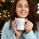 This design features a Christmas holiday joy typography cute mug with a simple turquoise beach sand dollar, a stylish trendy calligraphy script, a coastal nautical ocean sea Sealife, a creative whimsical unique style design, with simple minimalist cute lettering, a holiday Christmas drinkware drink, a coffee tea holiday gift idea, with ocean sea water marine life, a coastal living seaside nautical gift