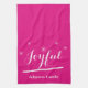 Holiday Joyful Kitchen Personalized Name Cool Pink Towel