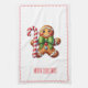 Holiday kitchen towel is shown with a cute gingerbread man print.
