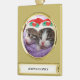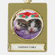 Holiday Kittens Wearing Red Santa Hats Family Name Gold Plated Banner Ornament