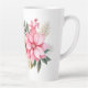 Holiday latte mug is shown with a festive poinsettia print.