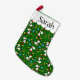Perfect! Exactly what I ordered! I uploaded a picture of my blue chow, and the screen print was incredible. the back side of the stocking was the red and black checkered print. my puppy's name was also printed on the cuff of the stocking. PERFECT! Highly recommend this product! My puppy's name was screen printed onto the cuff of the stocking, the font was perfect!