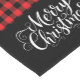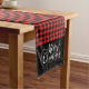 Holiday table runner is shown with a red buffalo plaid.