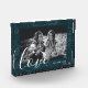 Send love for the holidays with this beautiful photo block featuring an original foliage and berry illustration. The word "love" is in a bold, modern script font. Photo, names and year are customizable. In greens, blues and reds.
