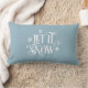 This holiday throw pillow is shown with a let it snow snowflakes print.