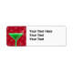 This return address label for your holiday party or Christmas cards has a green martini with a candy cane garnish against a deep red background.
