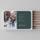 A stylish modern holiday photo matchbox design featuring the festive quote “all is merry and bright” in a modern minimalist font, paired with elegant handwritten script for your family name in white against a rich dark forest green background. Inspired by Scandinavian design, this clean and contemporary look brings warmth and sophistication to your seasonal celebrations. The greeting and name can be easily customised to make it personal for your family or event. Perfect for Christmas parties, wedding favours, or thoughtful holiday gifts. The image shown is for illustration purposes only and can be replaced with your own photo — the sample features a happy young couple collecting wood in the snow with their dogs, a husky and a small terrier. A modern, minimal design that feels fresh, festive, and beautifully timeless.