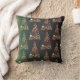 Holiday matte green gold Christmas tree pattern Throw Pillow