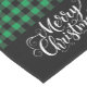 Holiday table runner is shown with a black and green buffalo plaid.