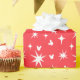 This red and white Christmas pattern features the iconic mickey head silhouette along with white starbursts on a red background.