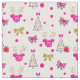 This Christmas pattern features the iconic Minnie Mouse head silhouette in pink with gold antlers.