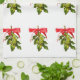 rows of red ribbon-ed green mistletoe
