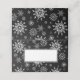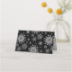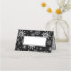 This holiday name place card is shown in a festive black and white winter snowflakes print.