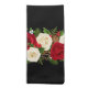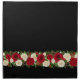 Dinner size napkin shown in a solid color of black with a festive holiday rose garland print design. Perfect for your holiday dinner party.