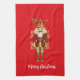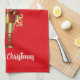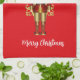 Holiday kitchen towel is shown with a festive Christmas nutcracker print.