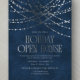 Invite clients, partners, and colleagues to a holiday open house that feels polished and festive. This corporate invitation features elegant silver lettering and sophisticated typography paired with silver string lights for a refined seasonal look. Midnight blue and silver set a welcoming tone for mingling, networking, and celebrating together. Perfect for companies, small businesses, and professional gatherings, it blends classic holiday style with a modern, upscale finish. Fully editable so you can tailor every detail for your event. Customize yours today to create the perfect invitation for your company’s holiday celebration!