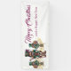 Select from indoor or outdoor, with or without grommets. Shown in white with text "Merry Christmas" and "Happy New Year" in a fancy script and coordinating text with a print of the nutcracker.