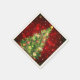 Holiday paper napkin shown in the standard cocktail size with a festive christmas tree print.
