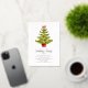 Real gold foil calligraphy spells out “Holiday Party” alongside your family name, paired with a sleek dark gray sans serif font for a balanced, contemporary layout. The reverse side features a coordinating tree illustration with editable fields for name and event date—perfect for customizing your holiday soirée.