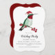 Cute holiday party invitation featuring a ruby-throated hummingbird wearing a Santa hat on a white background. Just add your name! The font size and color can be changed by clicking on "Edit this design".